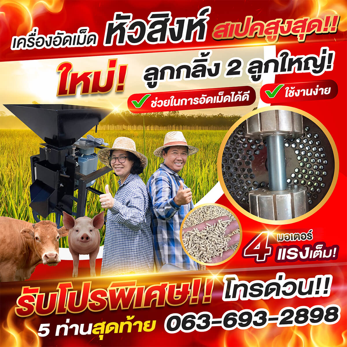 ⚡นวัตกรรมใหม่ เครื่องอัดเม็ดหัวสิงห์ สเปคสูงสุด❗