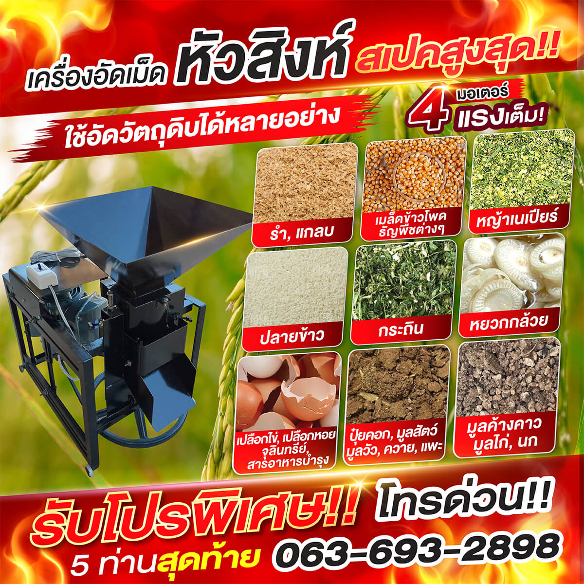 ✅สามารถอัดวัตถุดิบอื่นๆ เป็นอาหารเลี้ยงสัตว์ และทำปุ๋ย
